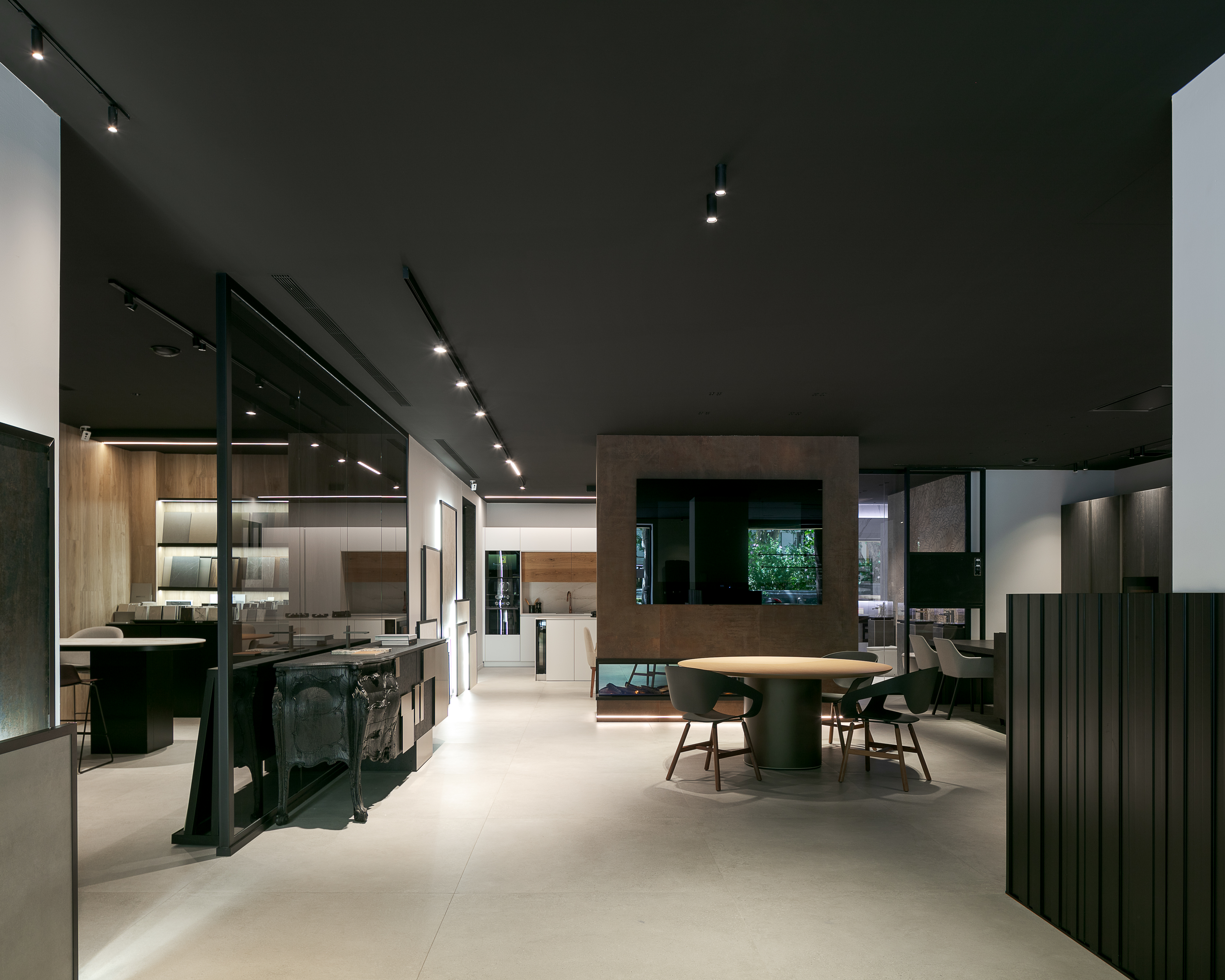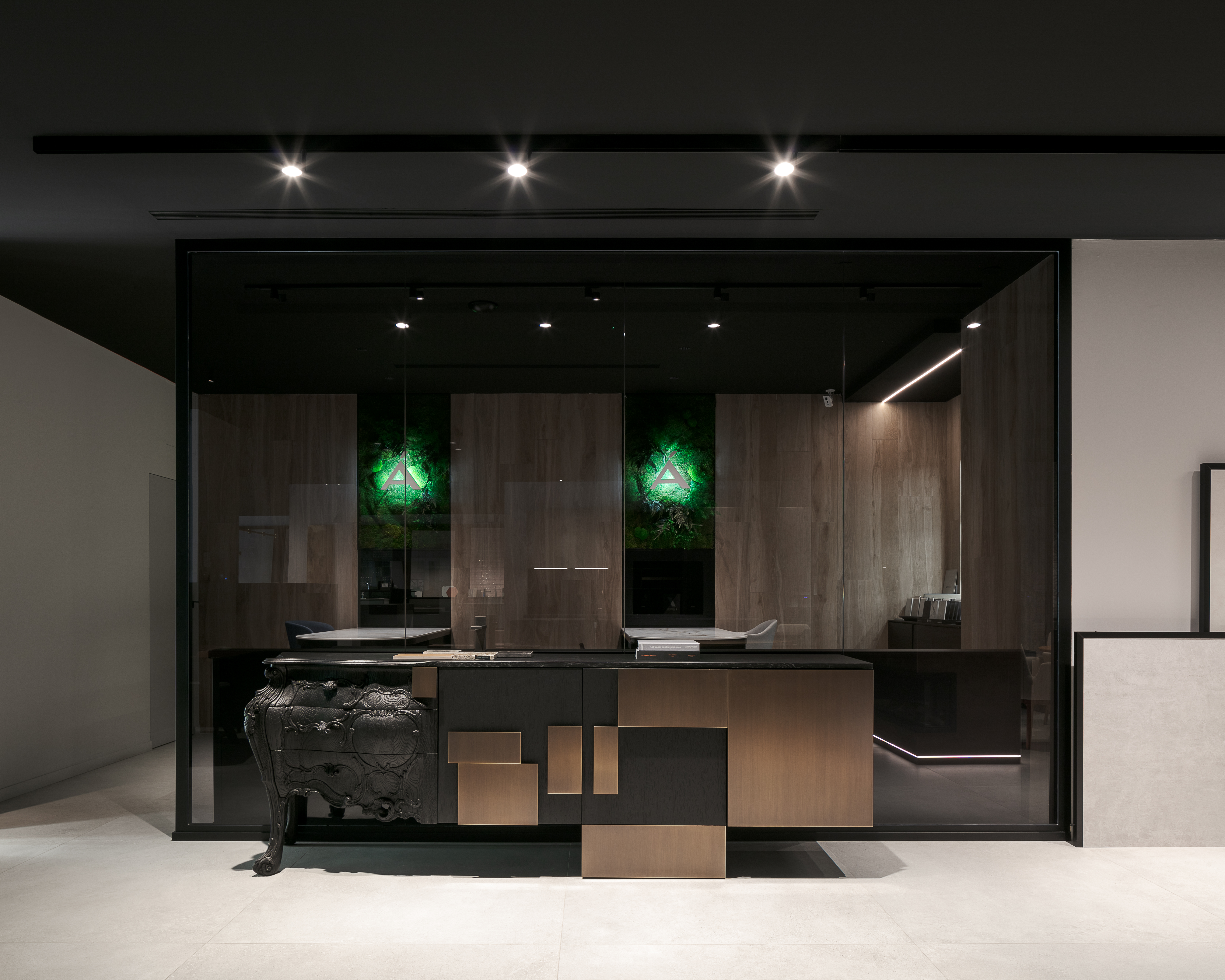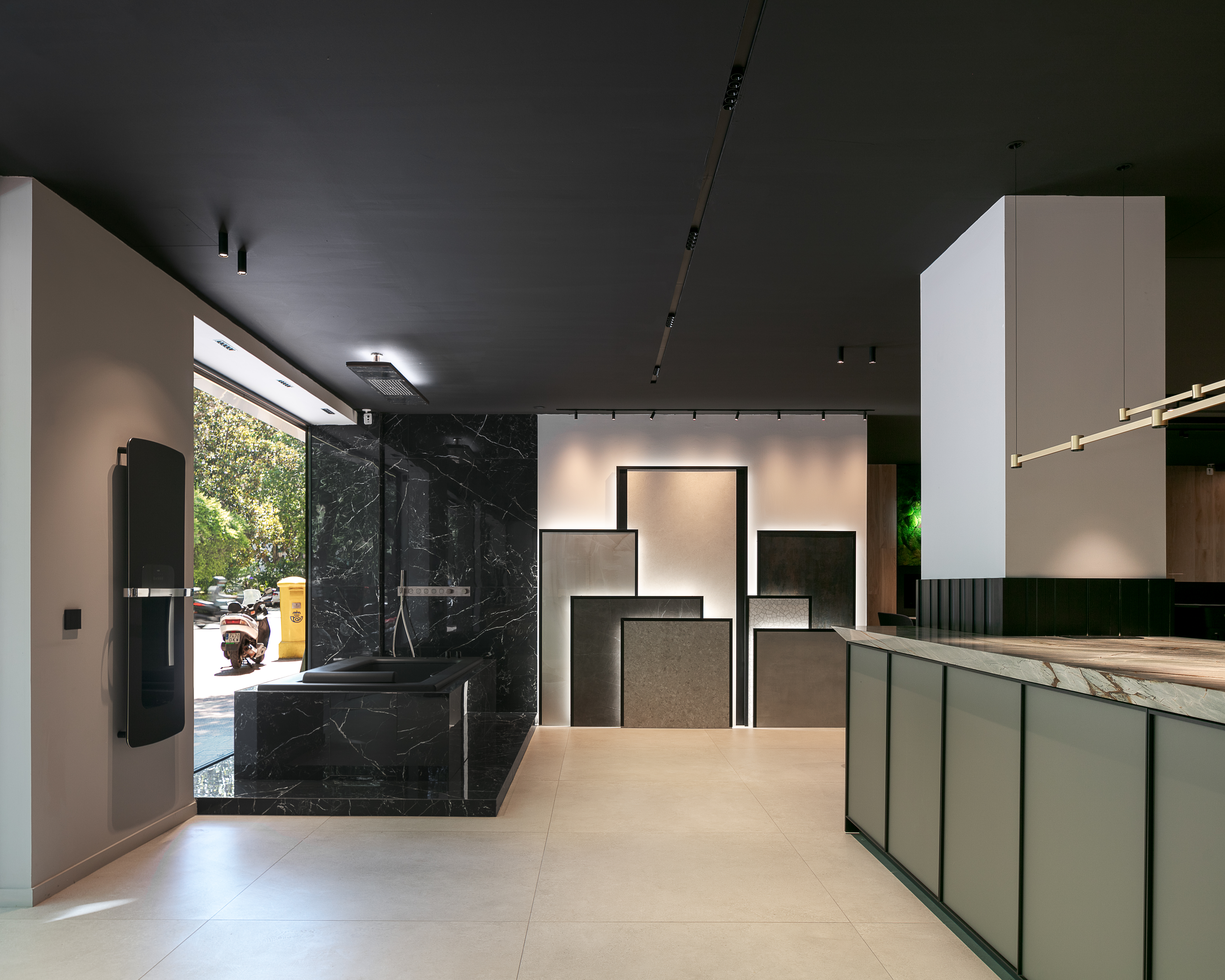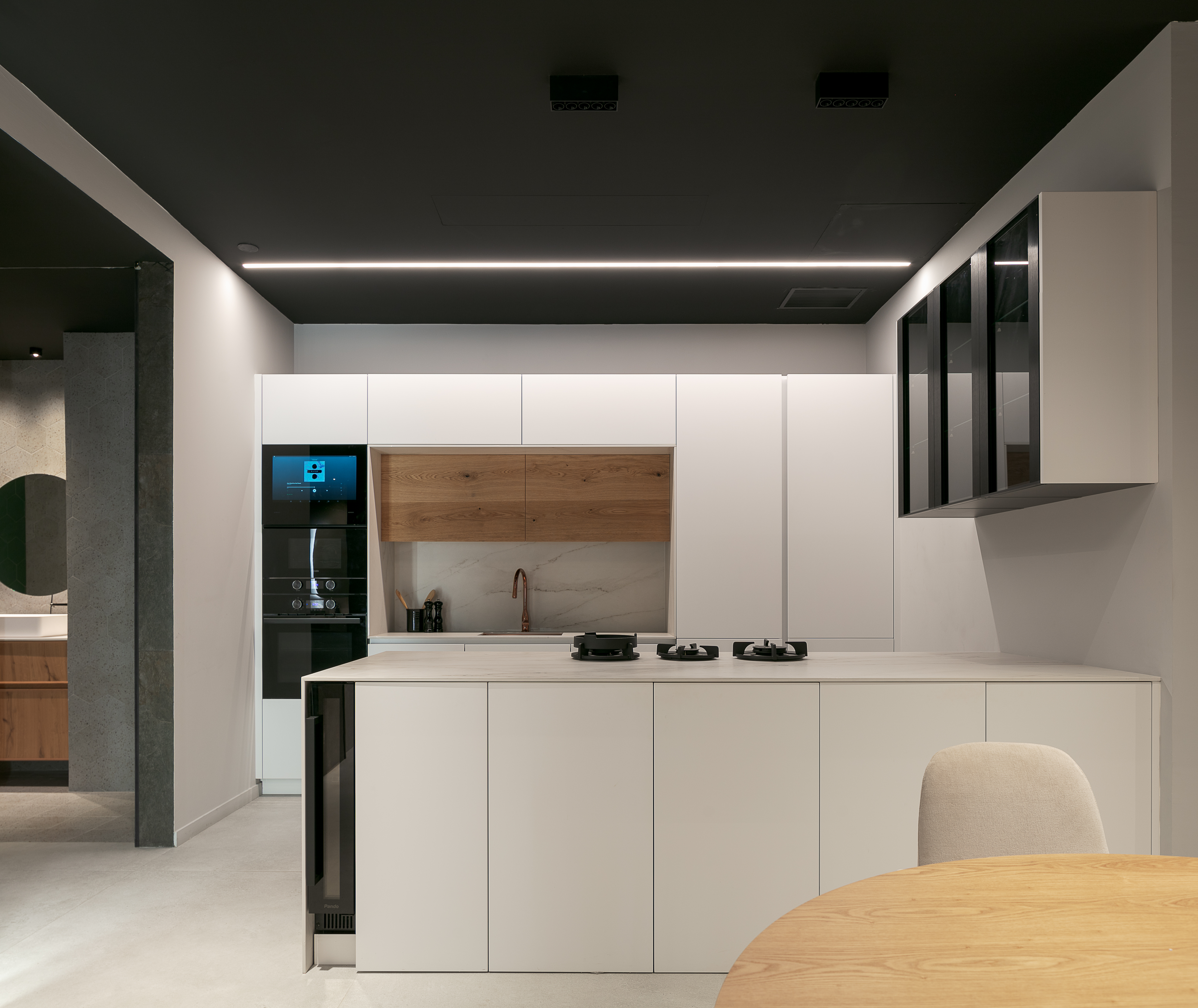 Se trata de un espacio elegante, en el que el color negro se convierte en el principal elemento de cohesión. Apostamos por una integración total del catálogo de productos en diferentes espacios del establecimiento, para transmitir una imagen de unicidad. Transformamos cada rincón en el marco perfecto para dar a conocer las diferentes especialidades de la firma valenciana. Una integración total, que nos permite jugar con cada espacio.