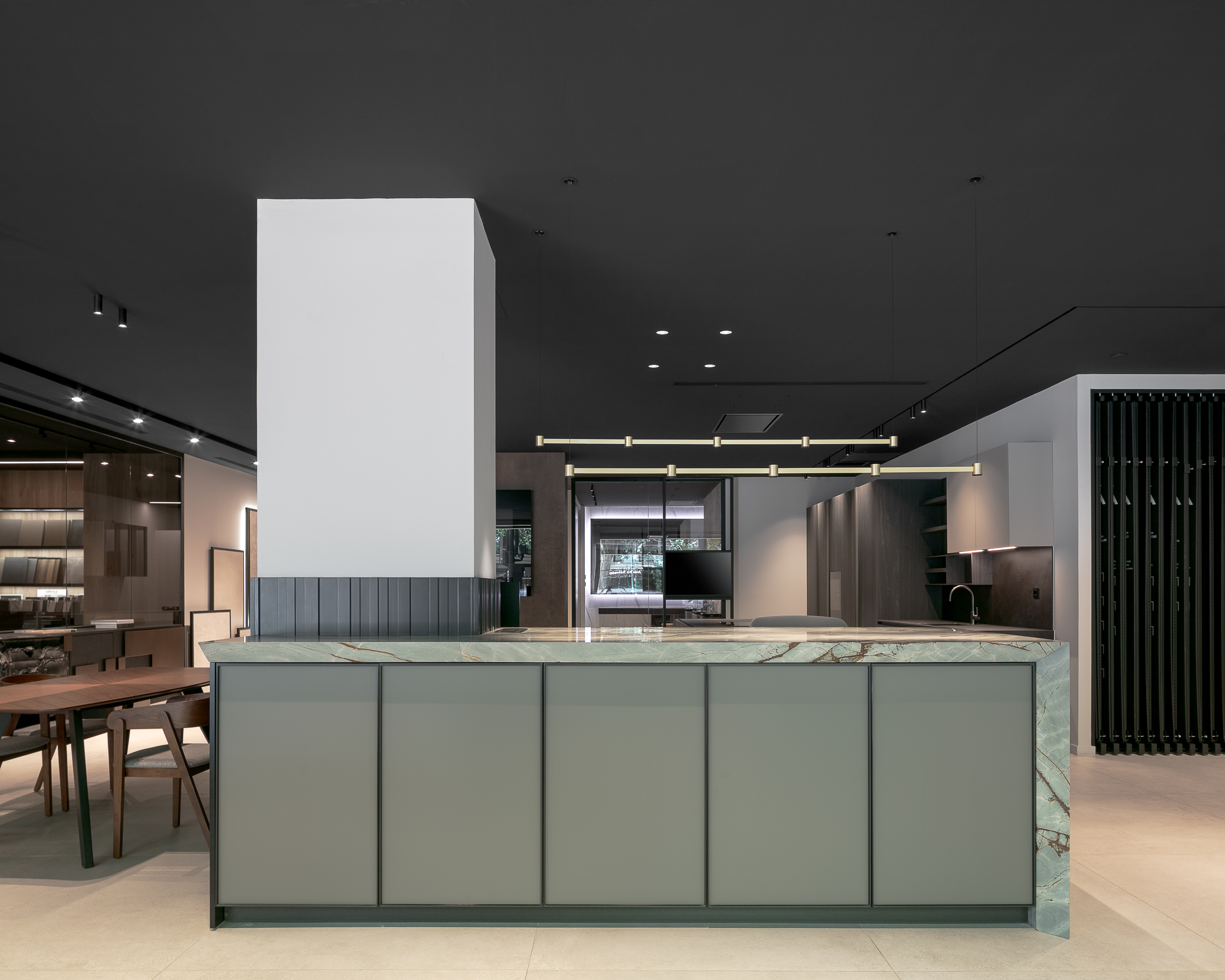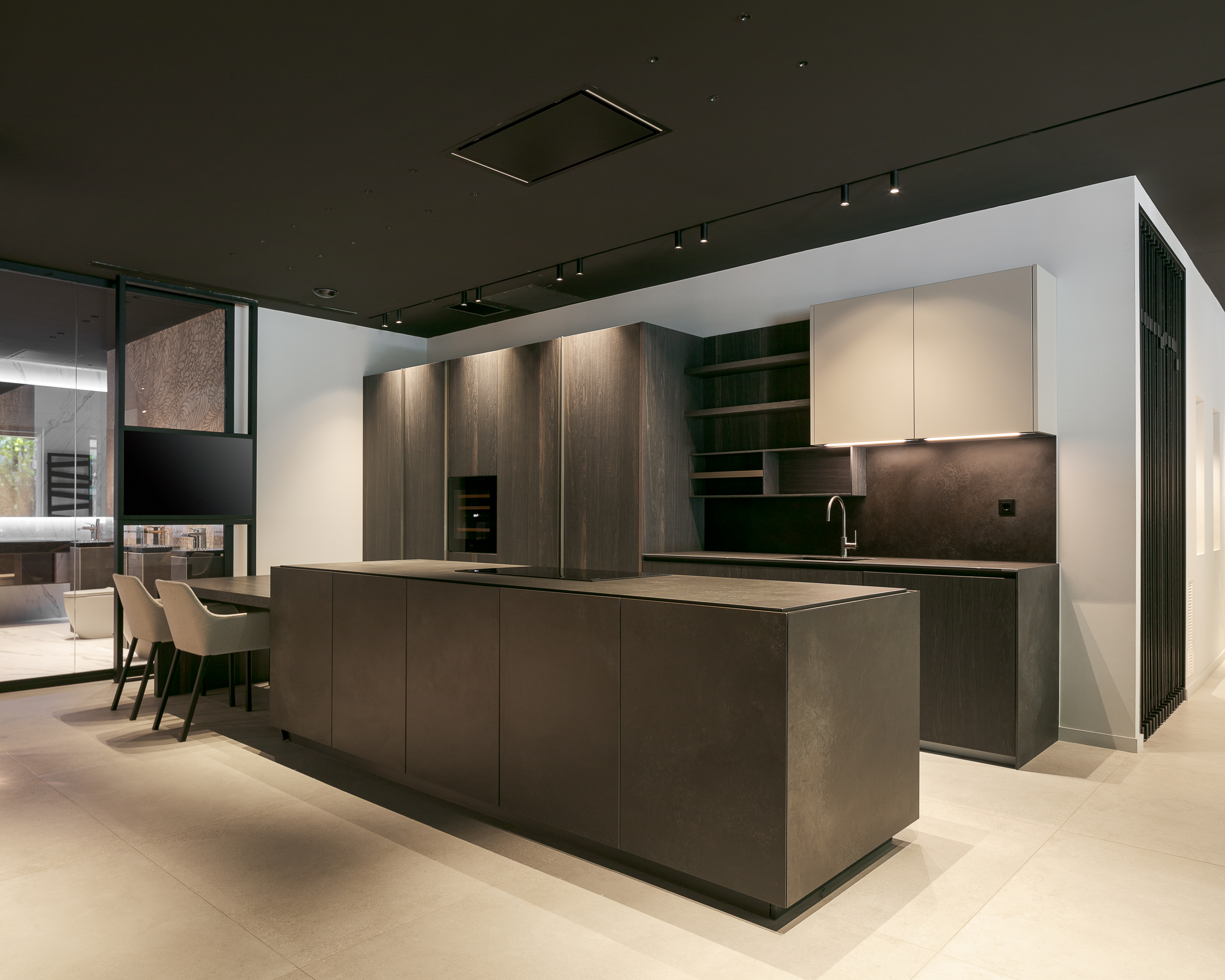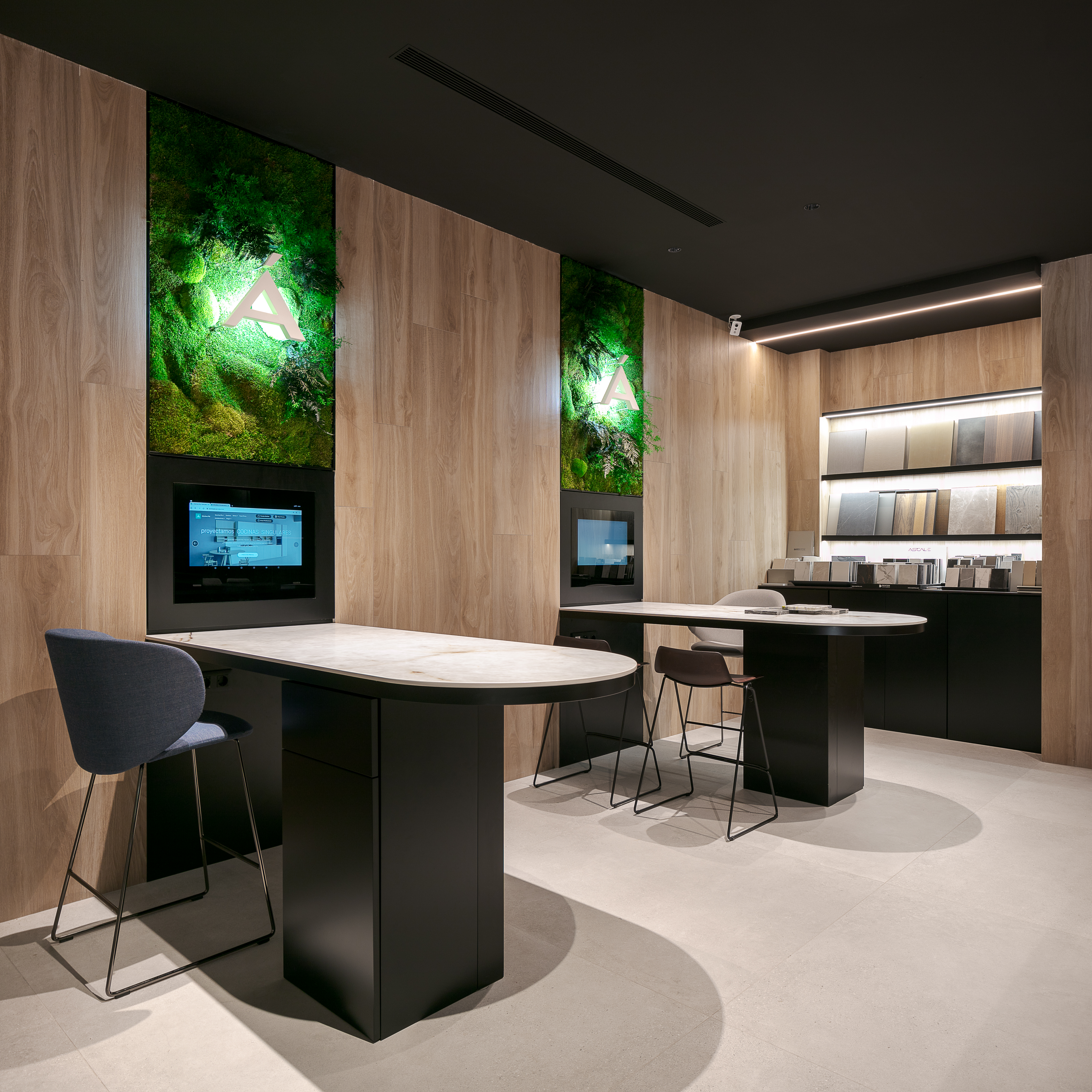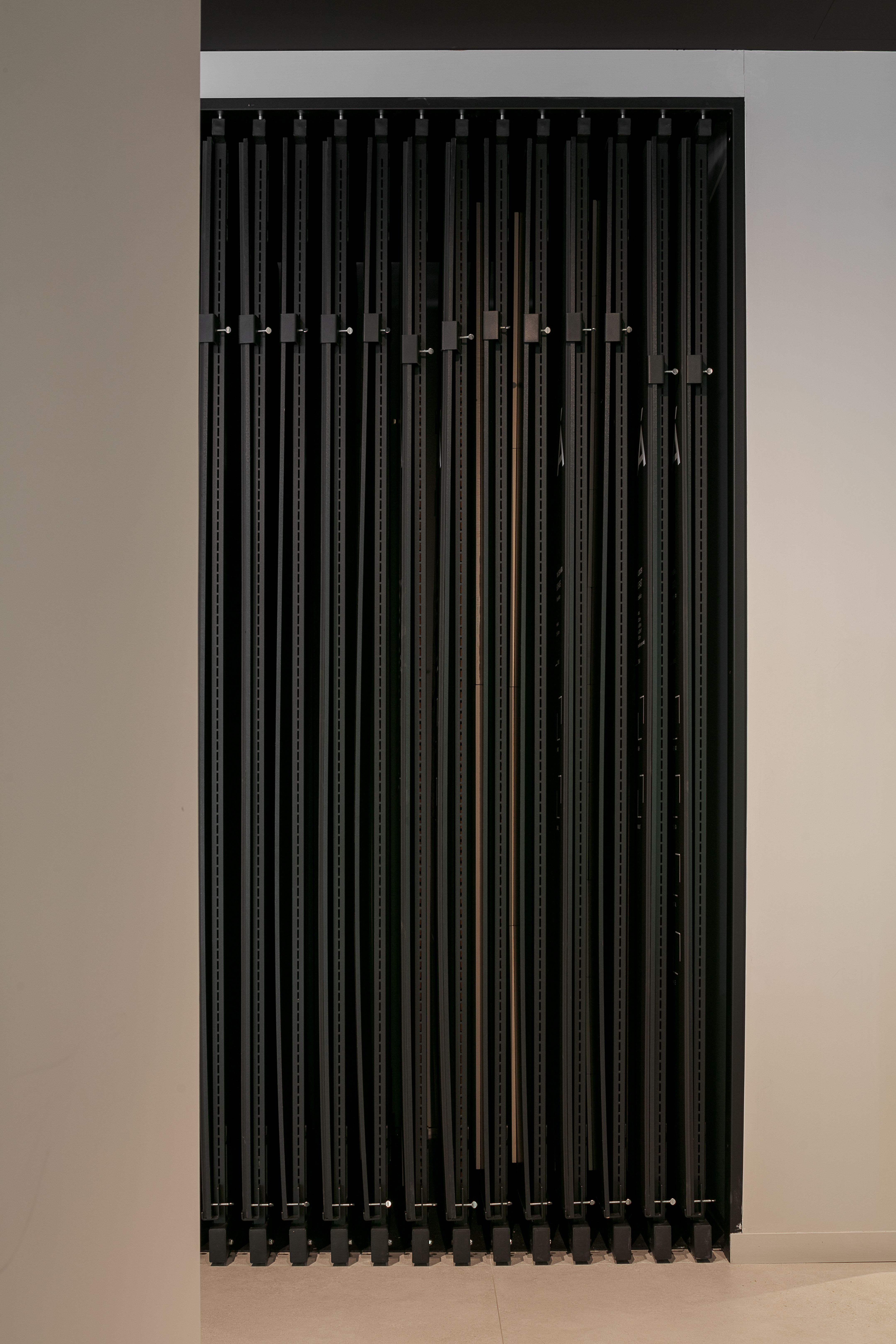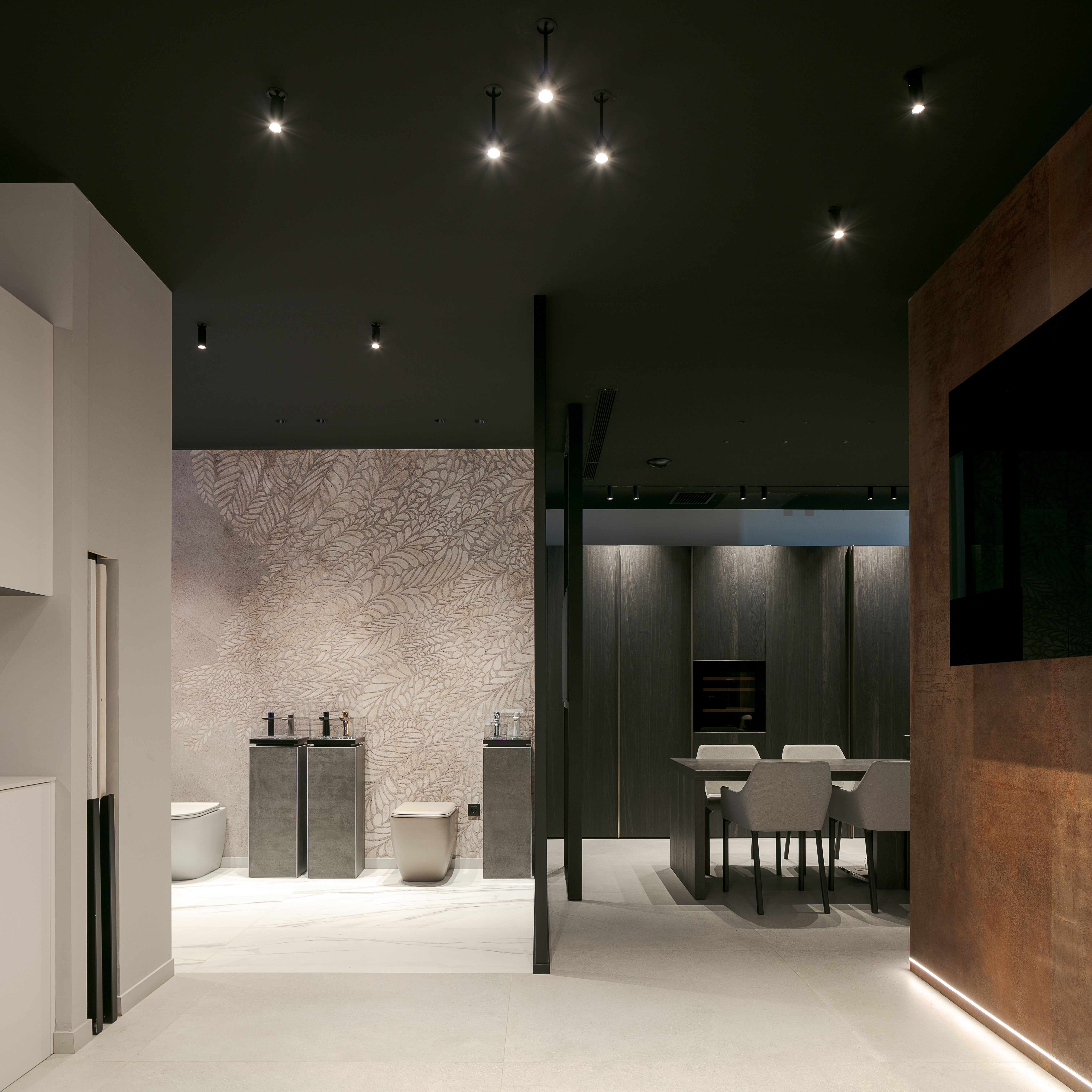 Se trata de un espacio elegante, en el que el color negro se convierte en el principal elemento de cohesión. Apostamos por una integración total del catálogo de productos en diferentes espacios del establecimiento, para transmitir una imagen de unicidad. Transformamos cada rincón en el marco perfecto para dar a conocer las diferentes especialidades de la firma valenciana. Una integración total, que nos permite jugar con cada espacio.