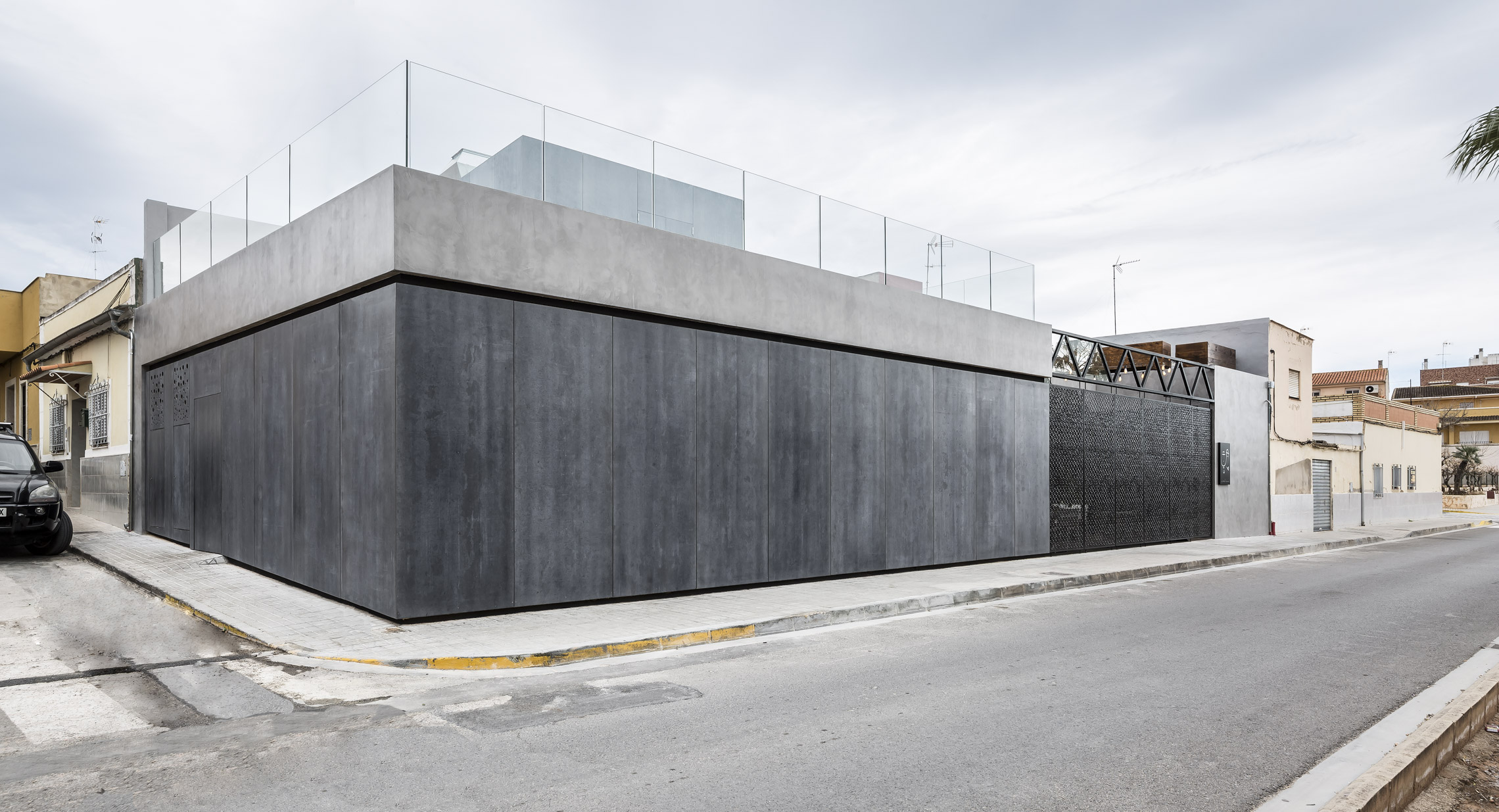 En cuanto a materiales, se utiliza viroc y microcemento para el exterior, y los mismos materiales unidos a la madera de nogal en la parte interior, dando una visión de unión interior-exterior.