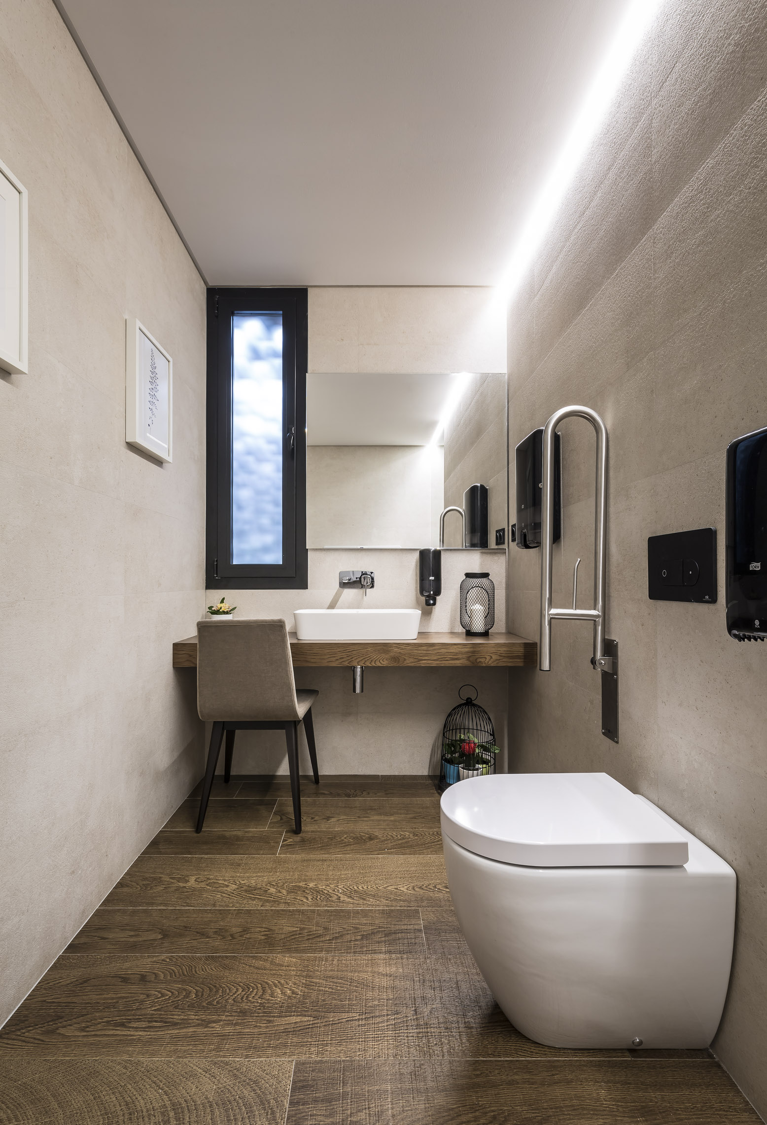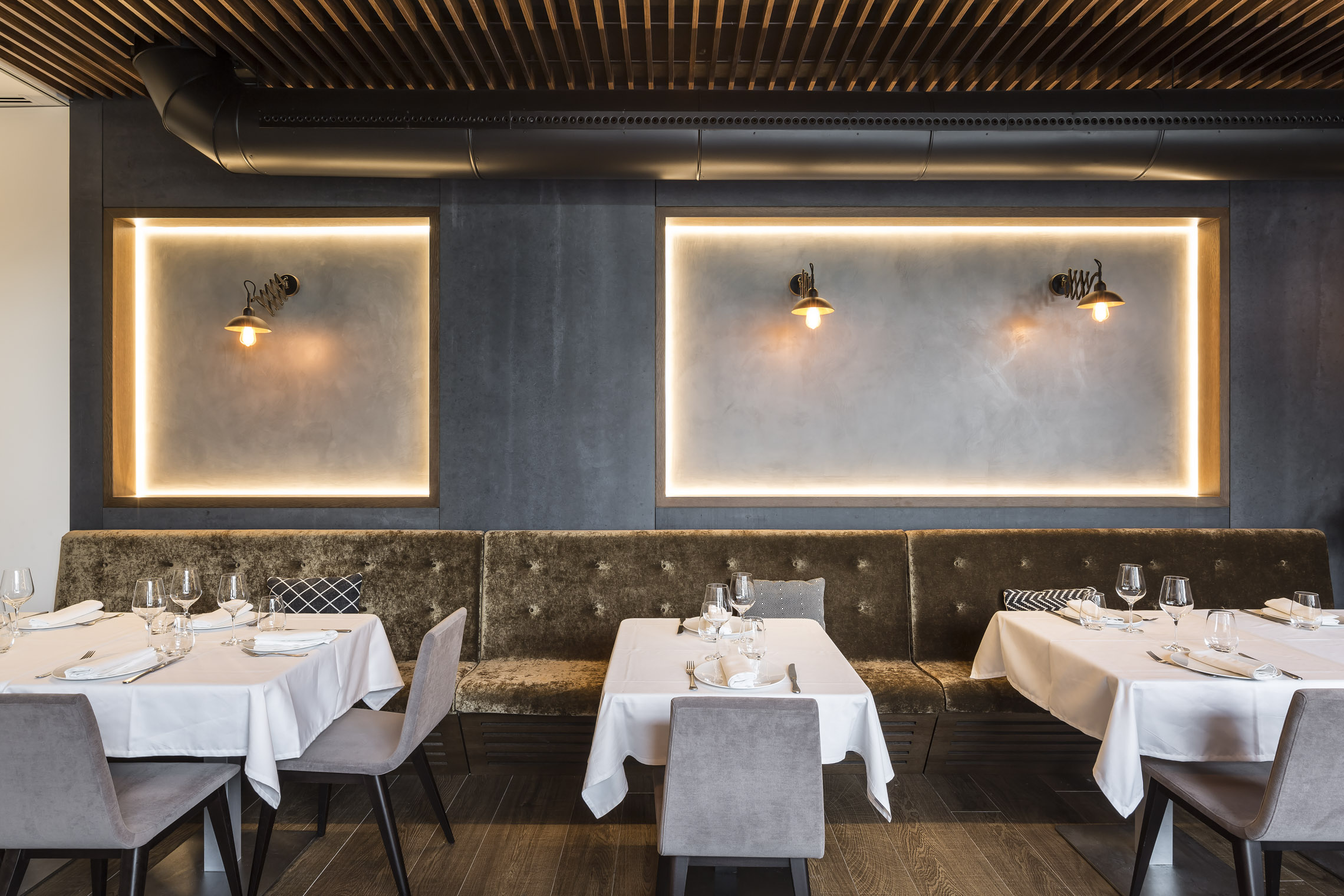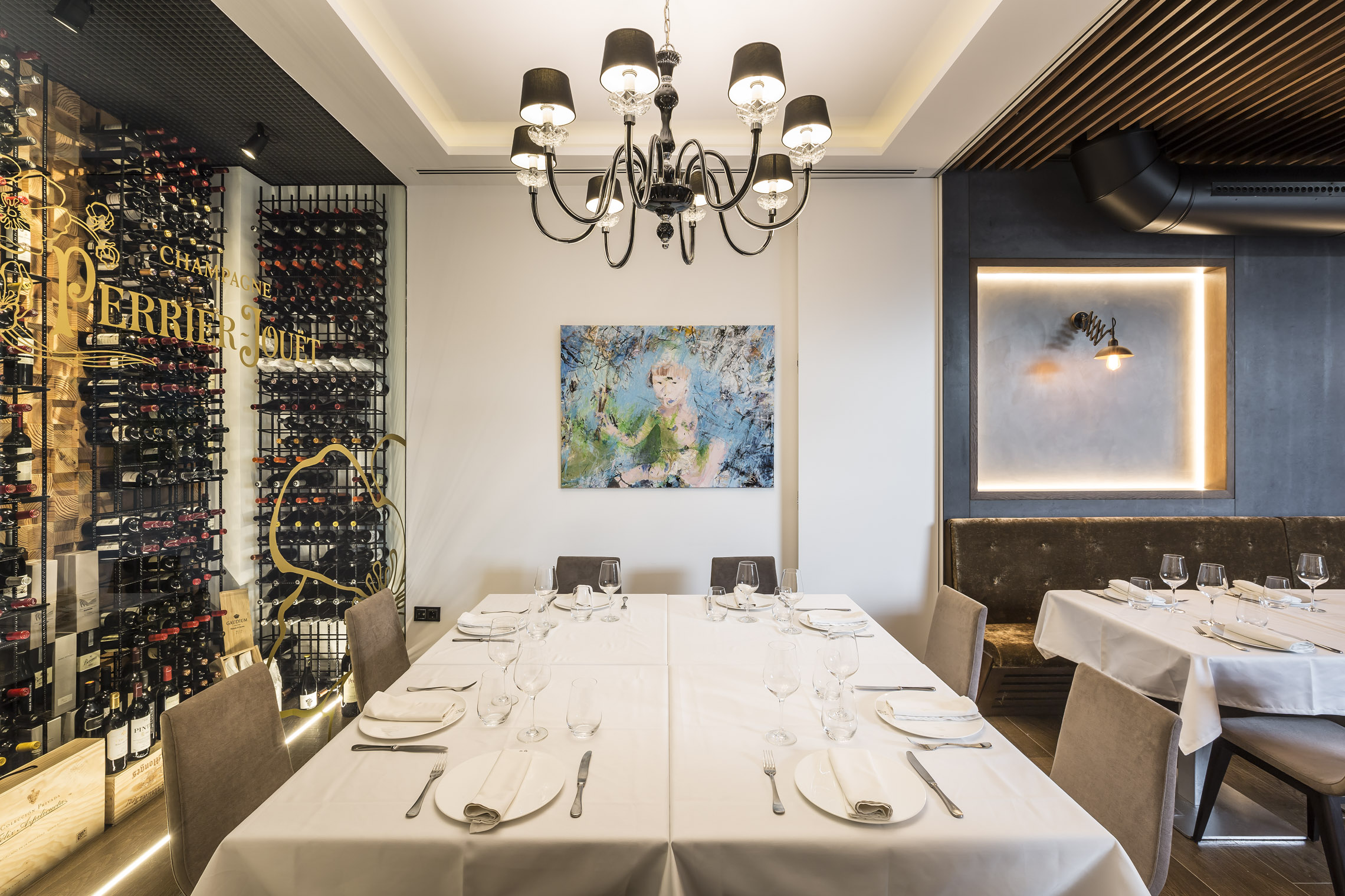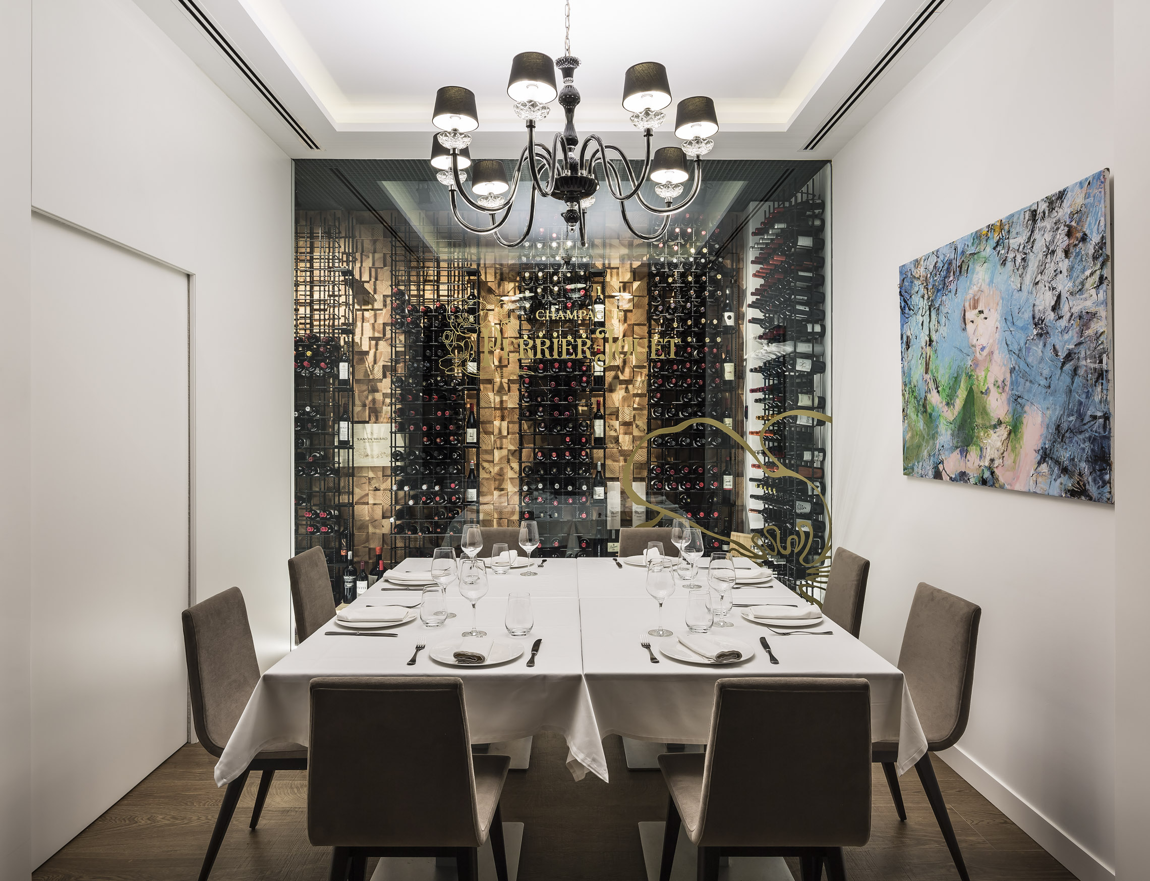 En este proyecto de reforma de locales, en cuanto a la distribución interior de planta baja, se dispone el salón principal con la barra y dos salones privados, uno de ellos con la posibilidad de unirse al salón principal mediante un tabique móvil. También se ubica una bodega climatizada con un gran vidrio que la comunica con el privado pequeño.