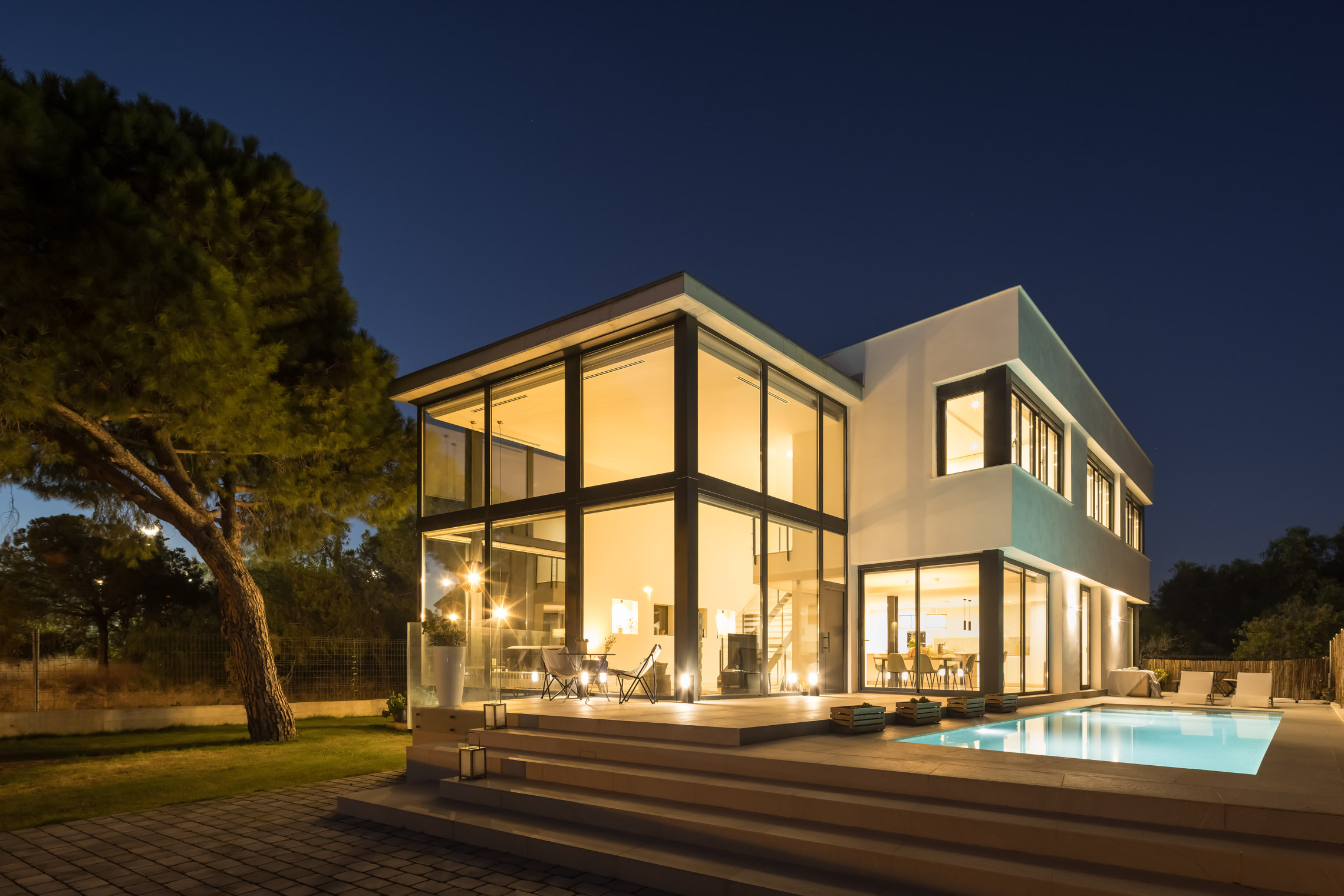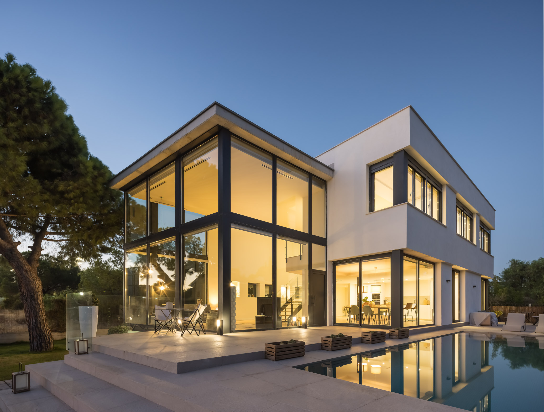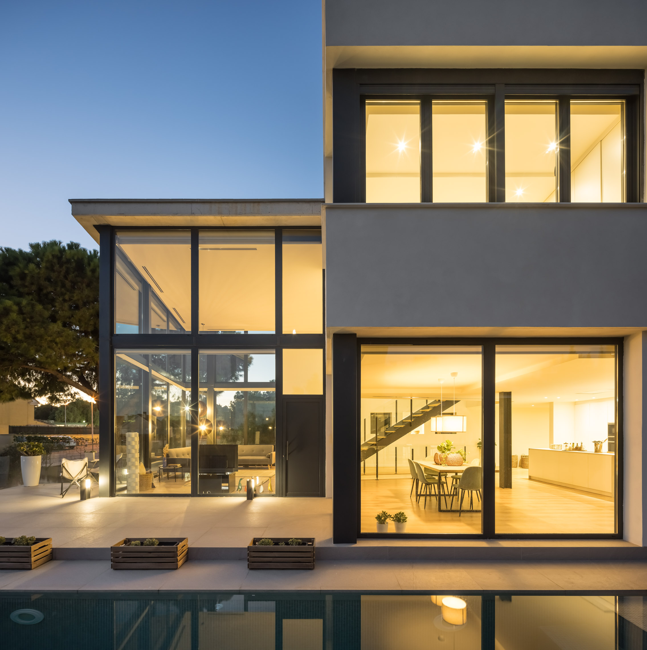 La amplitud de los ventanales son la conexión idónea a la zona exterior, donde se ubican la piscina de obra y el jardín.